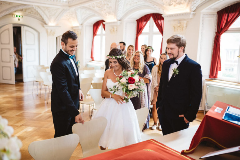 Die Hochzeit von Sina und Martin war in diesem Jahr mit Sicherheit die Längste und war eine wunderschöne Hochzeit im Boho Stil. An diesem Tag durfte ich so ziemlich alles fotografisch begleiten. Zuerst besuchte ich den Bräutigam beim Ankleiden im Elternhaus. Danach ging es für mich zum Frisör der Braut, die dort geschminkt und frisiert wurde. Zum “First Look” kam der Bräutigam dann ebenfalls an diesen Ort und wartete mit Blick auf den Bodensee auf die Braut. Nach dem “First Look” ging es in das wunderschöne Standesamt von Überlingen – den Museumssaal. Es folge ein Sektempfang bevor die Braut wieder verschwandt, um sich in ihr kirchliches Brautkleid zu werfen. Die kirchliche Trauung und der anschließende Sektempfang fand dann in Hödingen statt. Danach ging es für uns, das Brautpaar und mich, zum Brautpaarshooting, bevor wir zur Feierlocation fuhren. Die Location war eine alte Scheune, welche durch das Brautpaar und deren Freunde und Familie mit viel Liebe im Boho Stik hergerichtet wurde. Neben der Feier hatten die Beiden auch noch meine Fotokiste mit gebucht, welche dem Brautpaar sowie den Gästen ebenfalls sehr viel Freude bereitet hat. Ein sehr anstrengeder Tag, der sich aber absolut gelohnt hat.