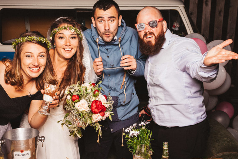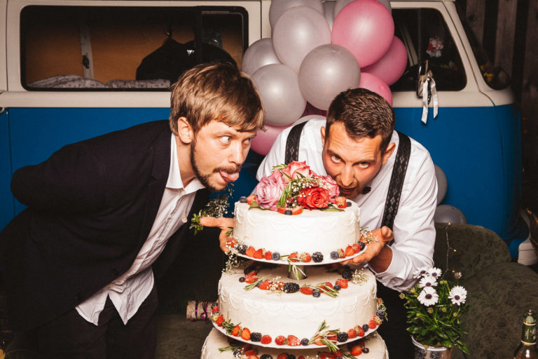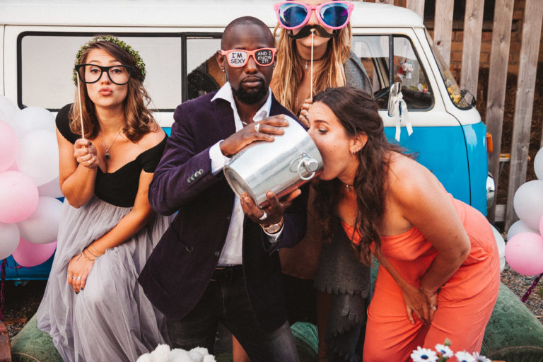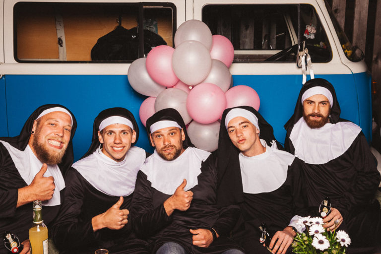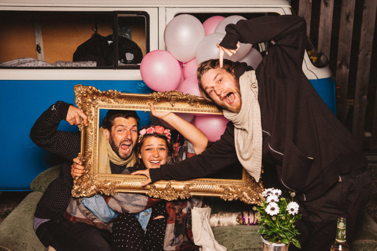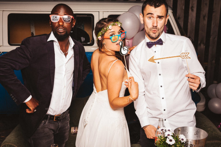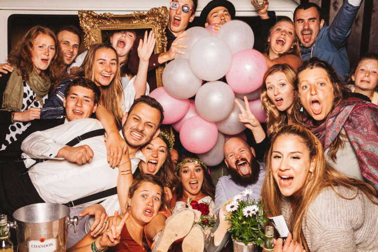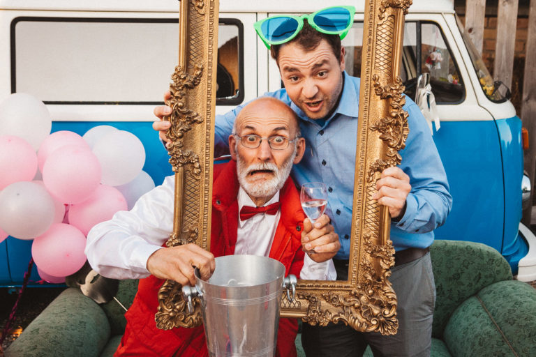 Dass die Fotokiste Ravensburg so gut ankam ist auch auch der lieben Trauzeugin der Braut zu verdanken, die sich ein Spiel mit den Gästen ausgedacht hat. Dabei wurden an allen Plätzen verschiedene Symbole verteilt. Jedes Symbol gab es genau zwei Mal und man musste sein passendes Symbol finden und mit dieser Person ein gemeinsames Foto an der Fotokiste bzw. dem Photobooth machen. Das sorgte dafür, dass es keine Grüppchenbildung gab und sich zuvor fremde Personen für ein gemeinsames Spaßfoto an der Fotokiste wiederfanden. Als die Trauzeugin gesehen hat, wie gut ihre Idee funktioniert, musste sie sich dann auch ein paar Tränen verdrücken. Ich denke die Ergebnisse können sich sehen lassen und natürlich ist Alkohol bei solch Bildern nicht unbedingt von Nachteil.