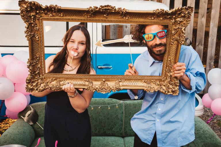 Sina und Martin haben sich neben einer ganztägigen fotografischen Begleitung meinerseits, auch noch für die Fotokiste Ravensburg entschieden. Die Fotokiste bzw. auch Photobooth genannt, stand an der Feierlocation im Hof. Dort haben die Beiden eine wundervolle Fotoecke vor dem Brautauto errichtet. Die Fotokiste wurde an dem Abend intensiv benutzt und so sind auch richtig lustige und tolle Fotos entstanden.