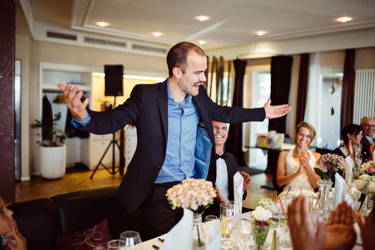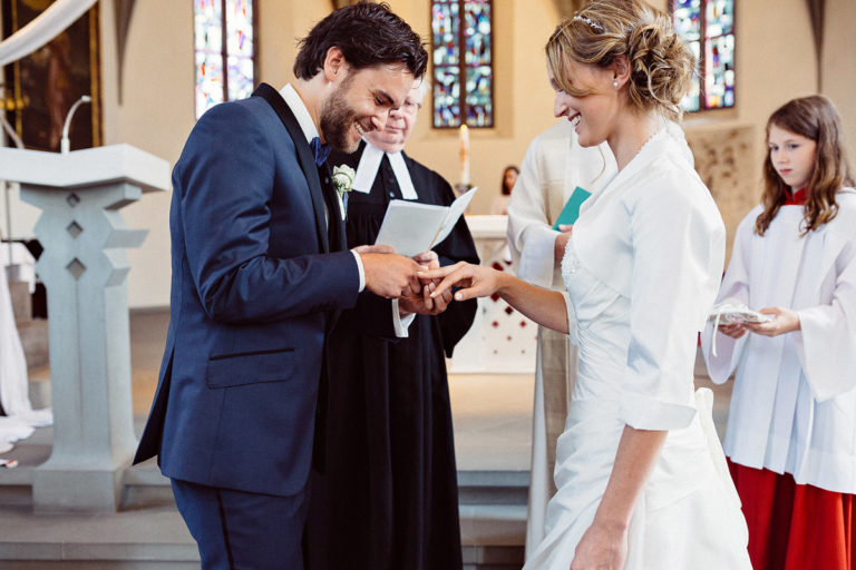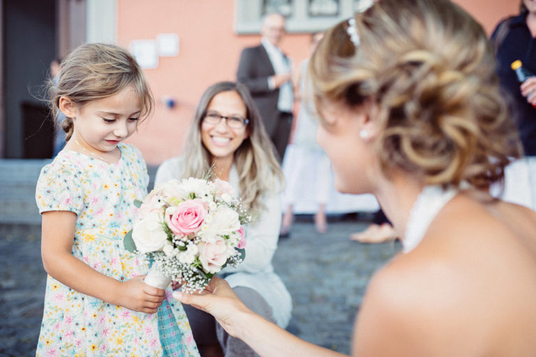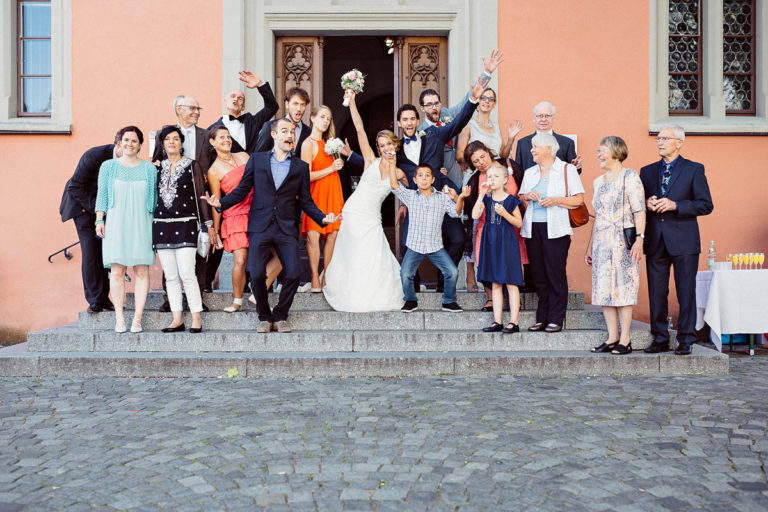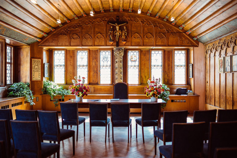 Weiter ging es zur standesamtlichen Trauung nach Ravensburg, welche im wunderschönen Sitzungssaal des Rathauses statt fand. Nach der Trauung gab es einen kurzen Sektempfang vor dem Rathaus und anschließend ging es weiter zur Kirche St. Christina. Es folgten eine sehr emotionale Trauung, die anschließende Gratulation und ein weiterer Sektempfang (so lob ich mir das). Die Feier fand dann in der benachbarten Veitsburg, welche nur einen kurzen Fußmarsch entfernt ist, statt. Quasi eine reinrassige Ravensburger Hochzeit: Standesamt Rathaus Ravensburg, Kirche St. Christina und Feier auf der Veitsburg mit einem tollen Ausblick über die Stadt.
