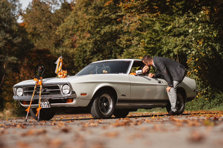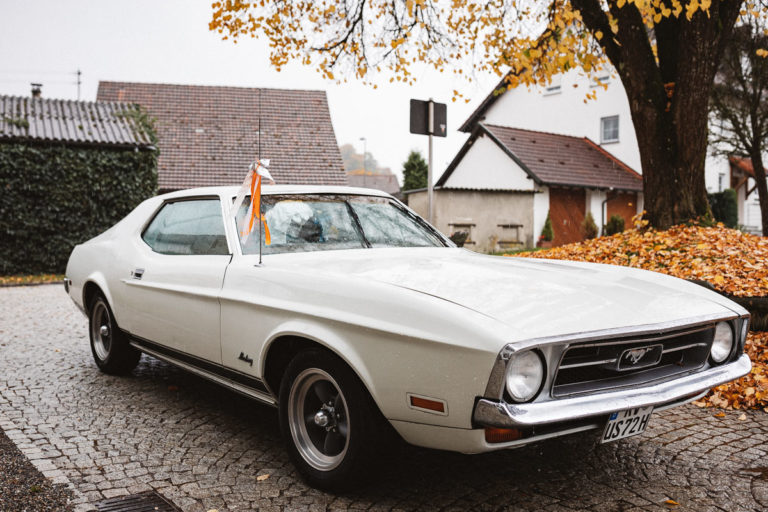 An diesem Tag durfte ich die standesamtliche Trauung von Frances und Martin im Standesamt Fronreute begleiten. Zuvor war ich beim Brautpaar und habe noch die letzten Vorbereitungen fotografisch begleitet. Bevor es losging überraschte der Bräutigam die Braut mit einem richtig schönen Brautauto. Der Sound hat mich Sicherheit das Herz eines jeden Autoliebhabers oder einer jeden Autoliebhaberin höher schlagen lassen. Mit diesem tollen Auto ging es dann für das Brautpaar nach Fronreute.