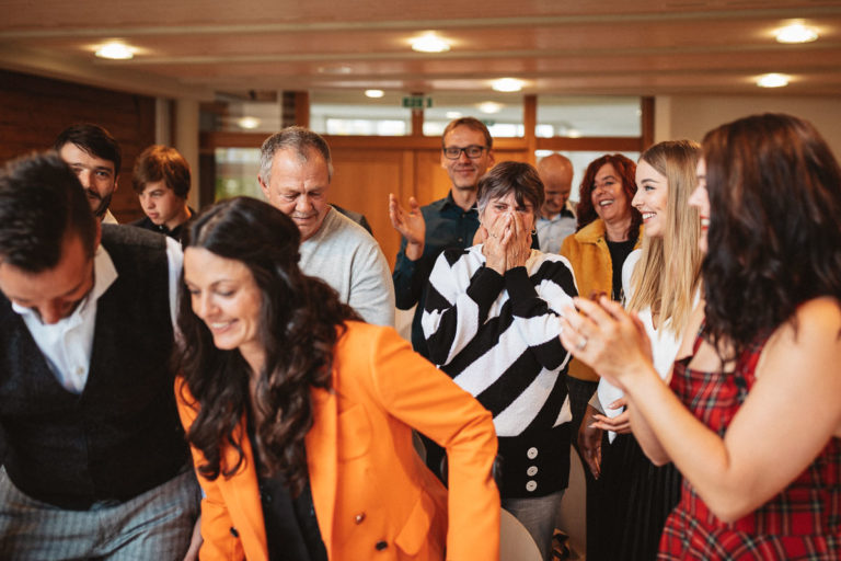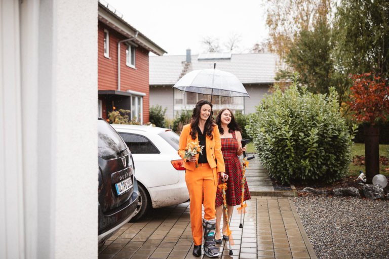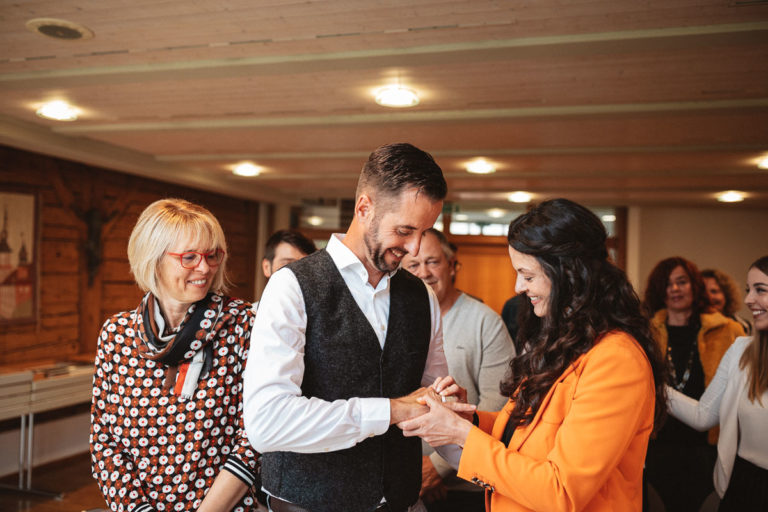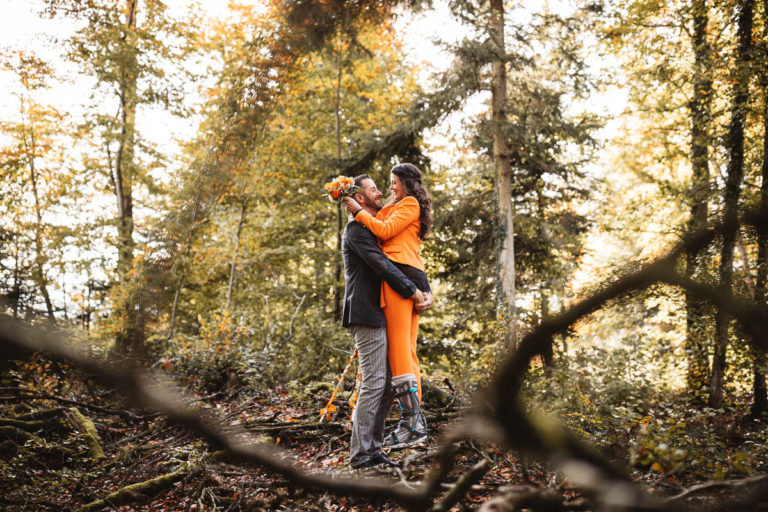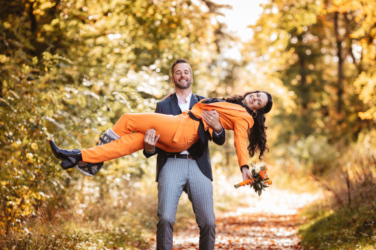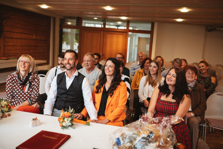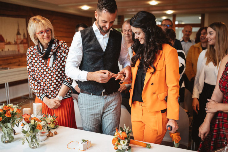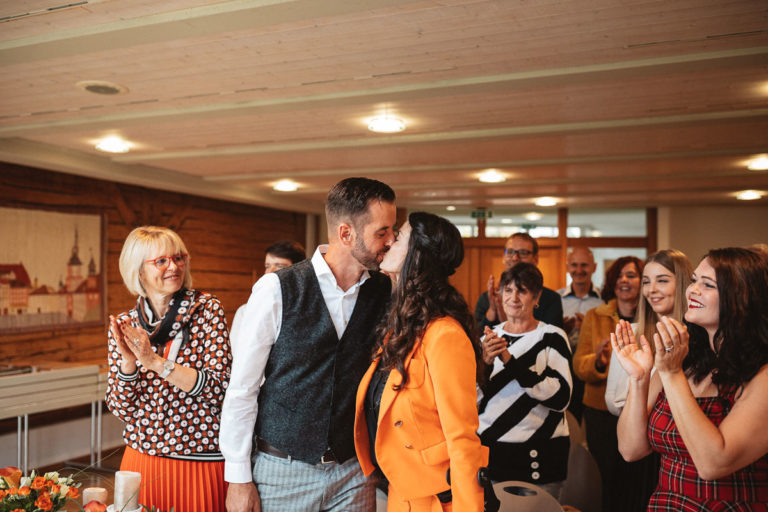Nach dem Standesamt folgte natürlich die Gratulation und der anschließende Sektempfang. Beim Sektempfang war das anfänglich regnerischer Wetter dann wieder vorbei, so dass wir noch ganz unproblematisch zum Brautpaarshooting übergehen konnten. Das Brautpaarshooting fand dann an einem nahegelegenen Weiher im Wald statt.